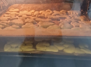 Es wurde gebacken. An vier Tagen konnten alle Kinder, die teilnehmen wollten (also fast sämtliche Betreuungskinder), Plätzchen stechen und verzieren (dank der Teigspenden der Eltern!). Wir Großen kamen mit dem Einschieben der Bleche kaum nach, sackten nachmittags erschöpft auf den heimischen Couchen zusammen, aber konnten für den Abend wieder eimerweise leckeres Gebäck anbieten.